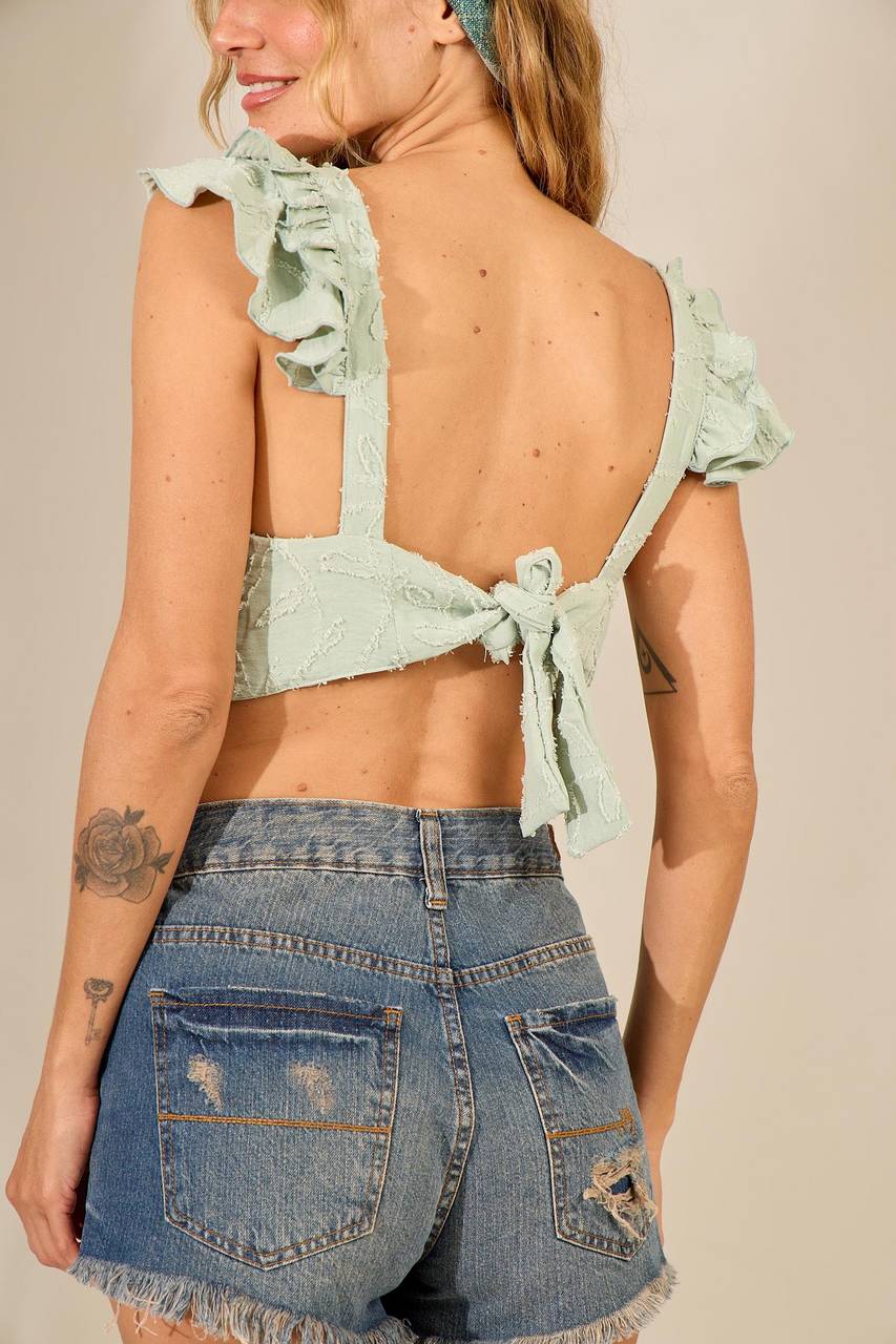 Cropped De Amarração Nas Costas Verde Menta Yacamim I7