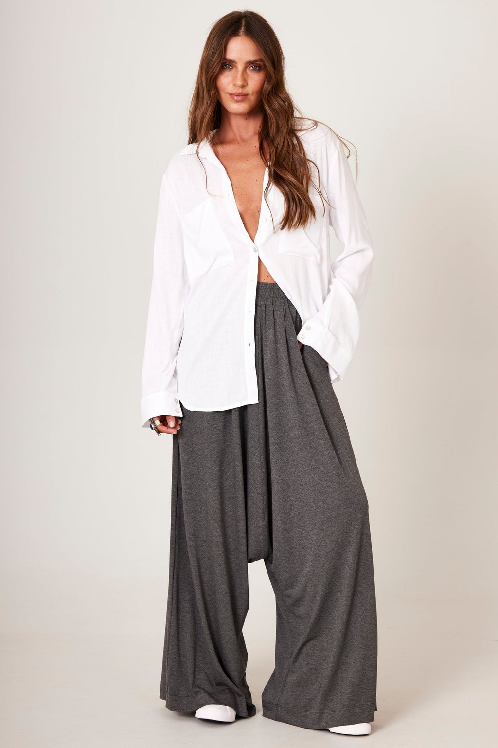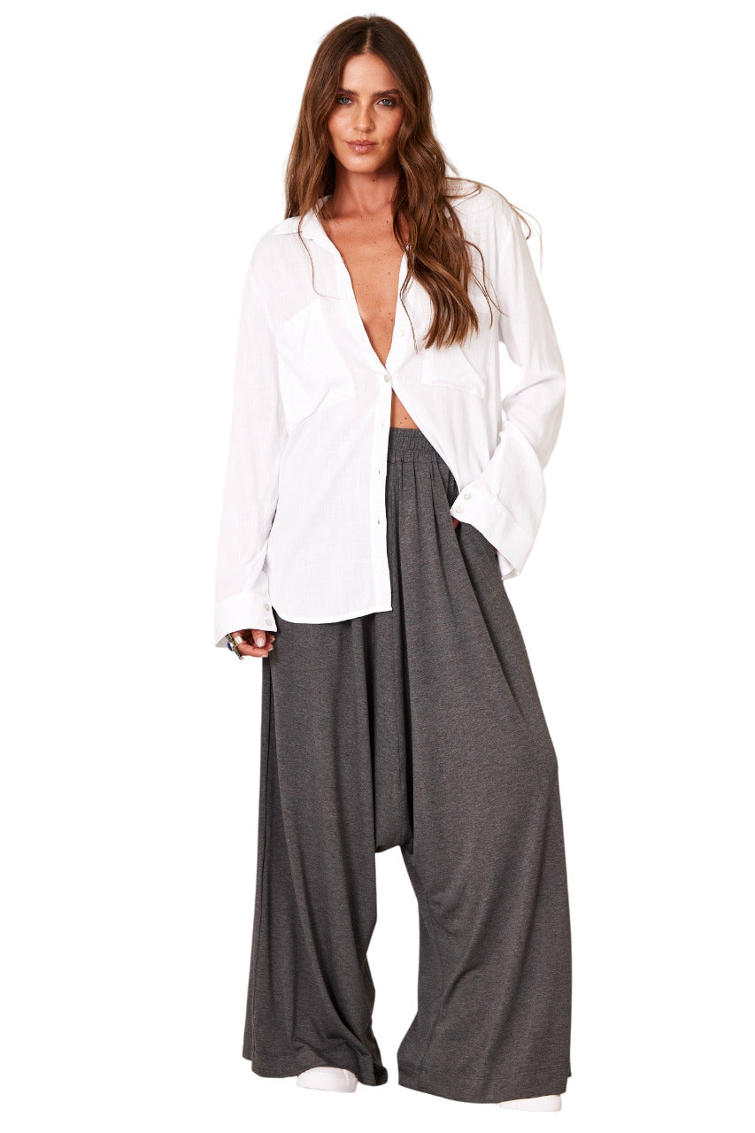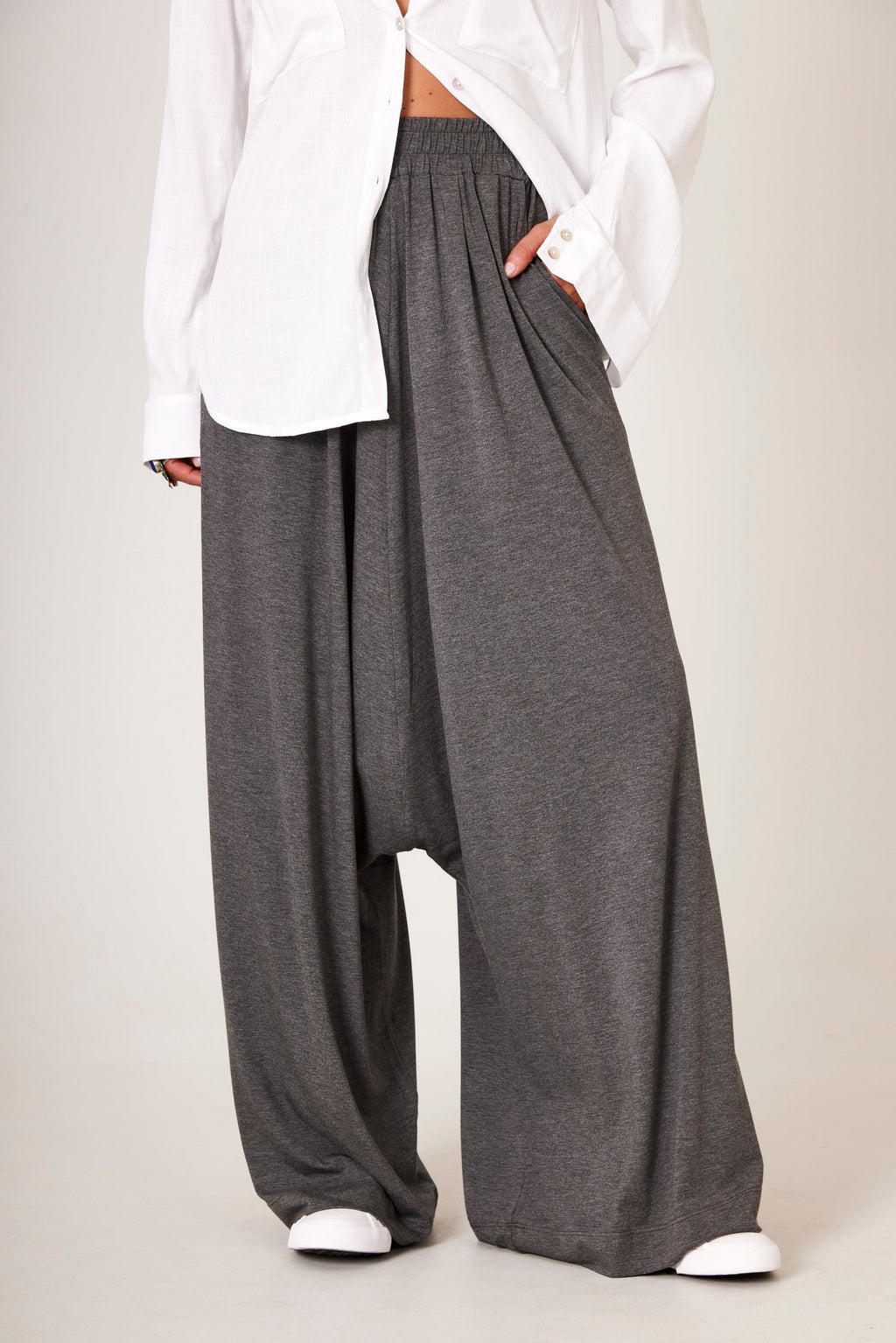 Destaques da peça: Confeccionada em tecido macio e flexível, composta por 96% viscose e 4% elastano, garantindo conforto e caimento fluído. Modelagem saruel, proporcionando leveza e modernidade ao visual. Cós com elástico para um ajuste confortável e seguro. Bolsos laterais funcionais, ideais para praticidade no dia a dia. Cor cinza escuro, fácil de combinar com diferentes estilos e ocasiões.