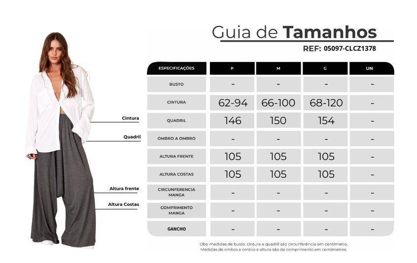 Medidas da modelo: Altura: 1,72m Busto: 89 cm Cintura: 63 cm Quadril: 88 cm