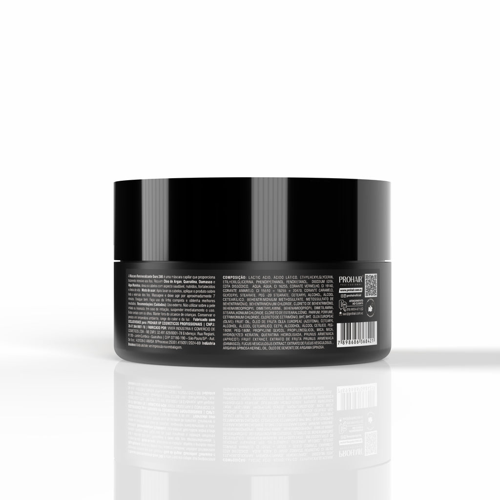 A Máscara Ouro 24K é um tratamento de alta performance que remineraliza e fortalece os fios, promovendo hidratação intensa e brilho tridimensional. Enriquecida com Óleo de Argan, Queratina e Extrato de Damasco, nutre profundamente, restaurando a proteção lipídica e proporcionando cabelos mais saudáveis, macios e vibrantes.