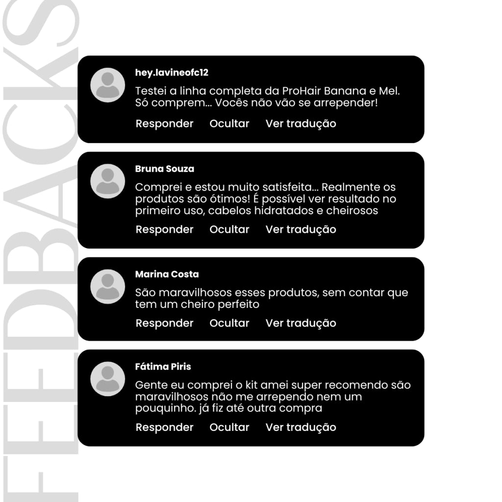 A linha Banana e Mel da ProHair foi especialmente formulada para promover nutrição intensa aos seus cabelos, revitalizando e restaurando a saúde capilar. Com extratos naturais de banana e mel, ela promove uma nutrição natural, deixando os fios mais macios, sedosos e com brilho. Além disso, sua poderosa fórmula ajuda a fortalecer os fios, proporcionando uma sensação de vitalidade e leveza. Se você busca cabelos nutridos e com aparência saudável, a linha Banana e Mel é a escolha ideal para manter seus fios sempre radiantes e protegidos.