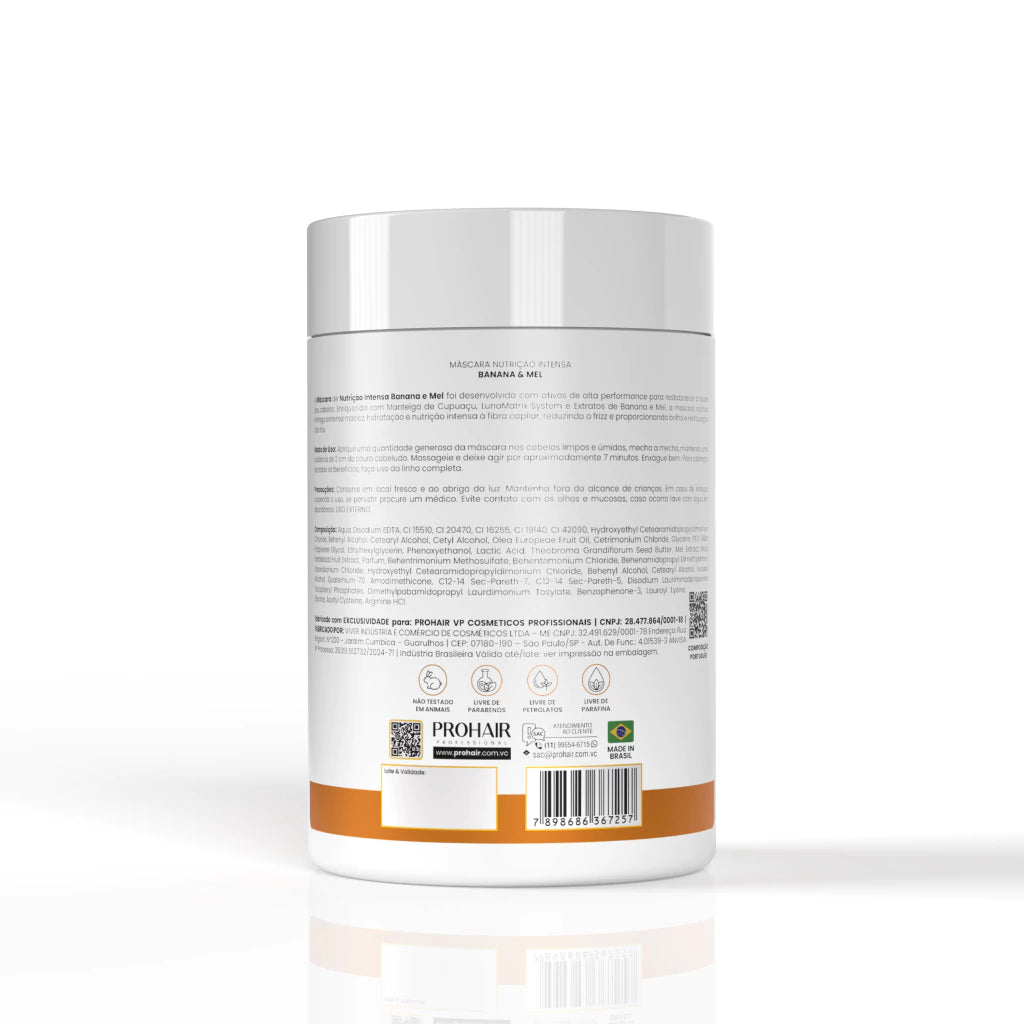 A Máscara Nutrição de Intensa Banana e Mel promove uma nutrição profunda e reconstrói a fibra capilar, proporcionando brilho, suavidade e resistência aos fios. Formulada com extrato de banana, mel, manteiga de cupuaçu e Lunamatrix System, ela hidrata, fortalece e previne o ressecamento e a quebra, deixando o cabelo macio, hidratado e revitalizado desde a primeira aplicação.